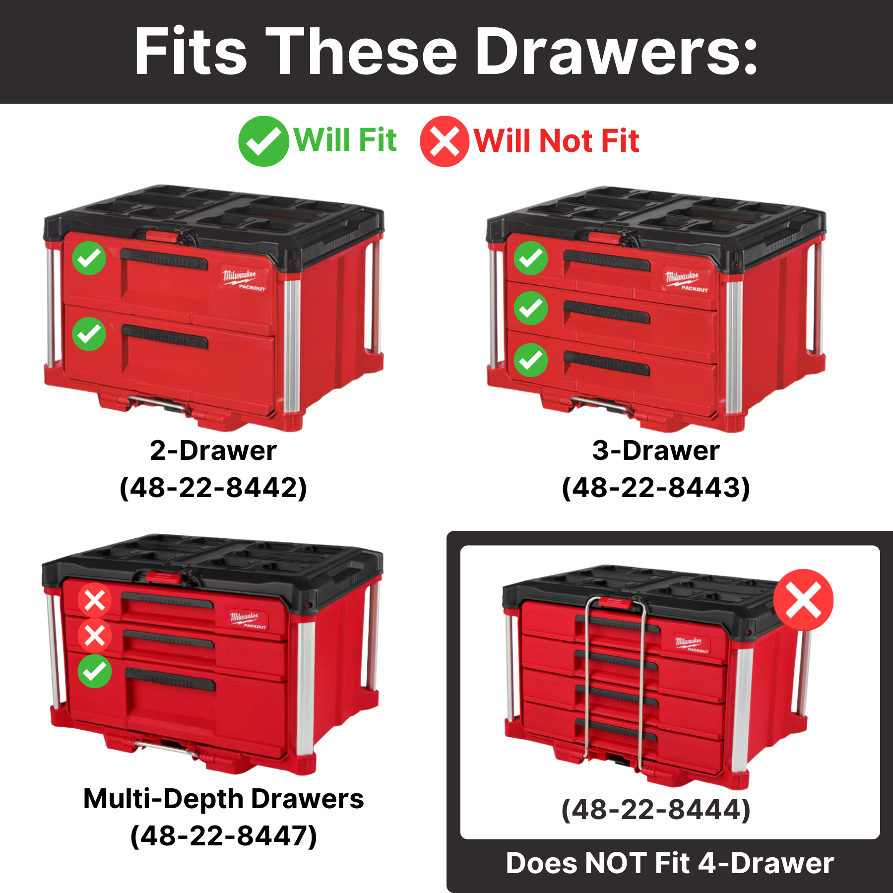 This kit is designed to organize the Milwaukee M18 Drywall Screwgun (2866-20) with collated attachment (49-20-0001), and the M18 Cut Out Tool (2627-20) in the Milwaukee PACKOUT 2-Drawer (48-22-8442) or 3-Drawer Tool Box (48-22-8443).